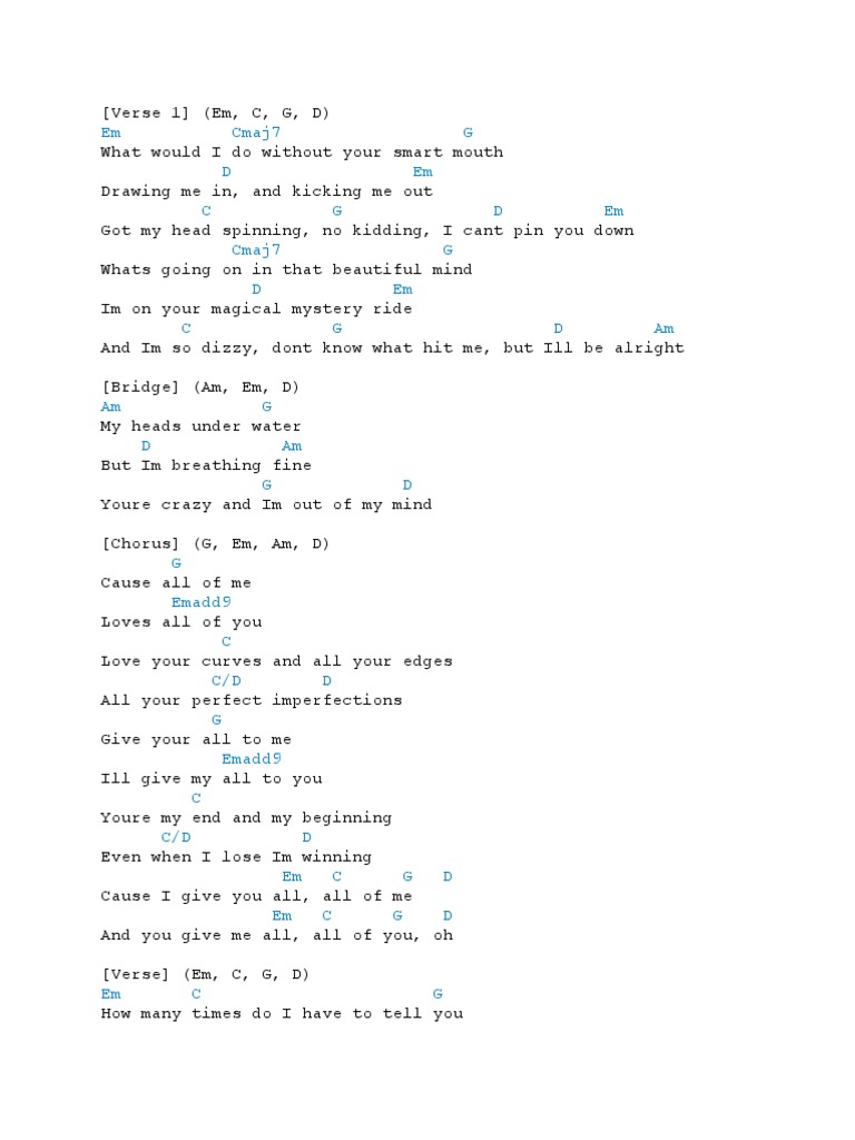 Legend All Of Me Sheet Music For Guitar Chords Pdf